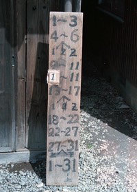 I had to think of something. I cut two big pieces of wood and drove nails into them and tied them together. When I made that Sensei praised me. However, even that stand lasted less than one week. So we struck at different places to save the wood. Then after a week I went out again to cut more wood in order to make a new stand. There were a lot of trees in the hills in those days. We used this setup to train in striking with the wooden sword...