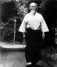 "This world is actually a complete manifestation of Heaven and Earth. We, as human beings created in the same divine, universal image, must make this earth into a truly heavenly place. We must complete and perfect human society. It is important that the people who train themselves in budo encompass the universe within themselves. The mission of Aikido is to achieve this harmony with the universe. To accomplish this must become your whole mind and heart."