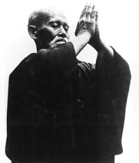 "The demonstration of Aikido that I just gave to you may have given you the impression of an old man playing with children. There is much truth in this impression. Unless you bring a sense of pleasure and of fun to your Aikido practice, the truth of Aikido is difficult to attain. I take great pleasure in my pursuit of the path of the gods. Aikido must be a dance of the gods. Remember the myth of "Ama no iwata biraki," the opening of the rock door of heaven. In this ancient story Amaterasu Omi Kami, the sun goddess, hid herself in a cave and sealed it with a door of stone, and the whole world became veiled in darkness. In order to bring light back to the world the other gods devised a plan. They staged a dancing drama in front of the door to Amaterasu's cave. As they danced and celebrated, the sounds of their laughter and enjoyment reached the goddess's ears, and she opened the door a tiny way, curious to see what revels were going on outside her cave. At that moment, Teji Kara no Mikoto, the god of incomparable strength, pushed open the rock door and led Amaterasu back out into the world, and the world was once again filled with her light. This old story provides a lesson concerning the duty of budo. Just as the strong god brought Amaterasu's light back into the world, budoka must work to create a paradise on this earth, to bring light to the world's people. This is the true purpose of budo. Just as you, who follow the teachings of your religion, all pray for peace and human happiness, the Aikido of Ueshiba works for precisely the same goal. In the eyes of God all of humanity is one family.