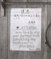 1. The original intent of bujutsu was to kill an enemy with one blow; since all techniques can be lethal, observe the instructor's directions and do not engage in contests of strength.